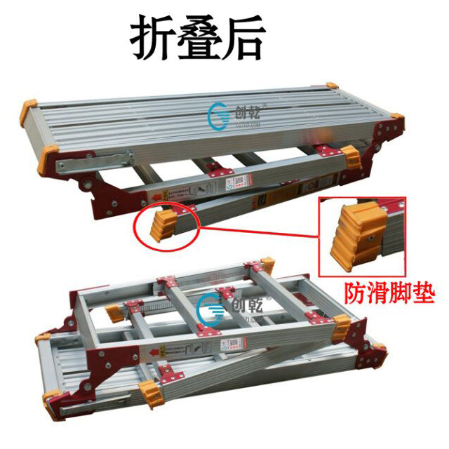 產(chǎn)品簡(jiǎn)介:創(chuàng)乾正品移動(dòng)伸縮折疊洗車工作臺(tái) 清洗臺(tái)梯鋁合金加厚凳平臺(tái)梯子