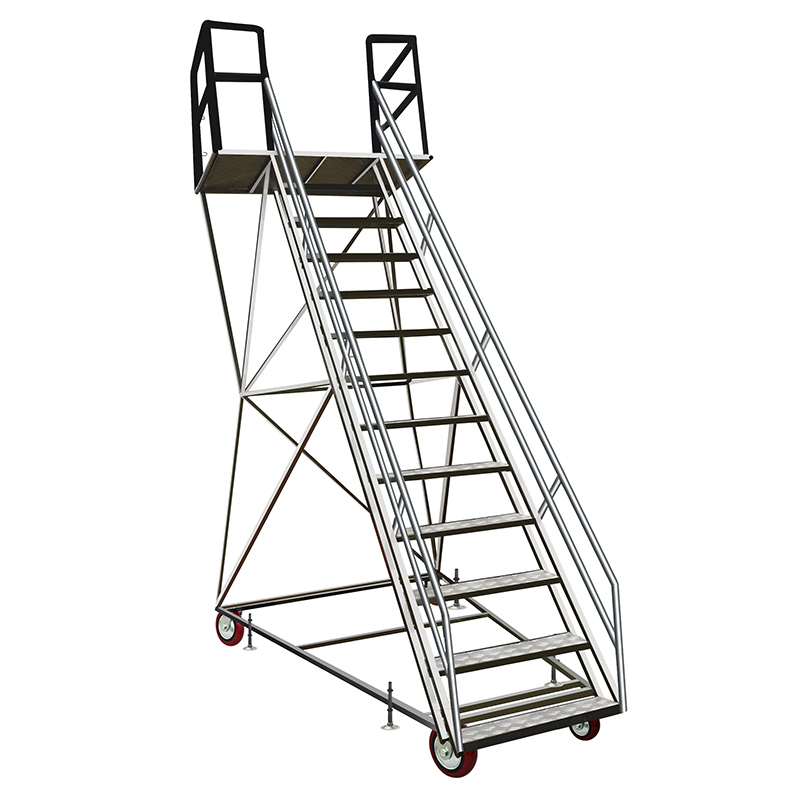 非標定制;此梯由不銹鋼扶欄和鋁合金支架等全焊接構(gòu)造而成,有四個車輪可以推動,上面的扶欄可以更好更安全的保護作業(yè)者的人身安全或工具等不外泄。承重為150-250公斤。主要用于飛機場、倉庫、超市等長期使用單位,以及對安全比較重視的企業(yè)和個體。