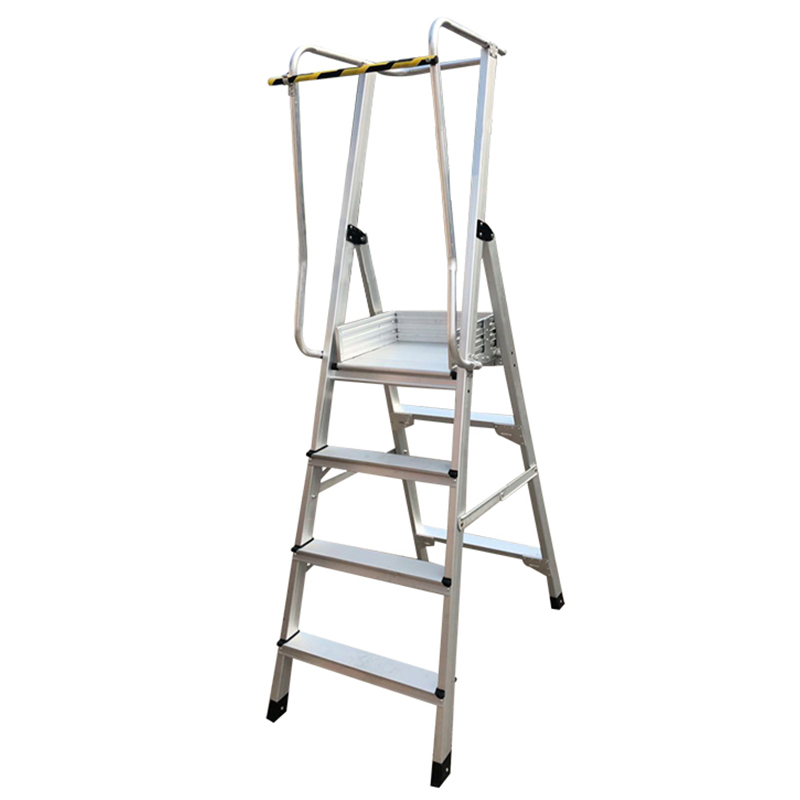 產(chǎn)品簡介:采用高反光鋁圓管欄桿,多重保護(hù),更安全,全鋁特厚踢腳板,防止腳踩空,加長圓扶手,輕松上下安全梯,高靜音橡膠輪,輕松搬動(dòng)梯子。