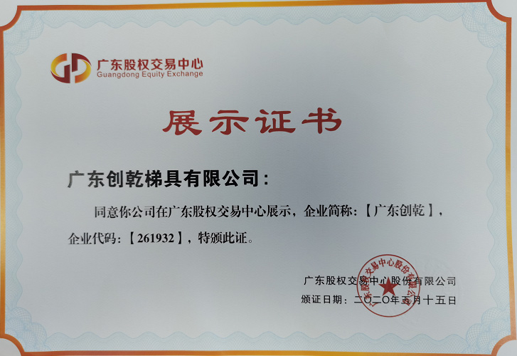 - 廣東創(chuàng)乾股權(quán)代碼展示證書