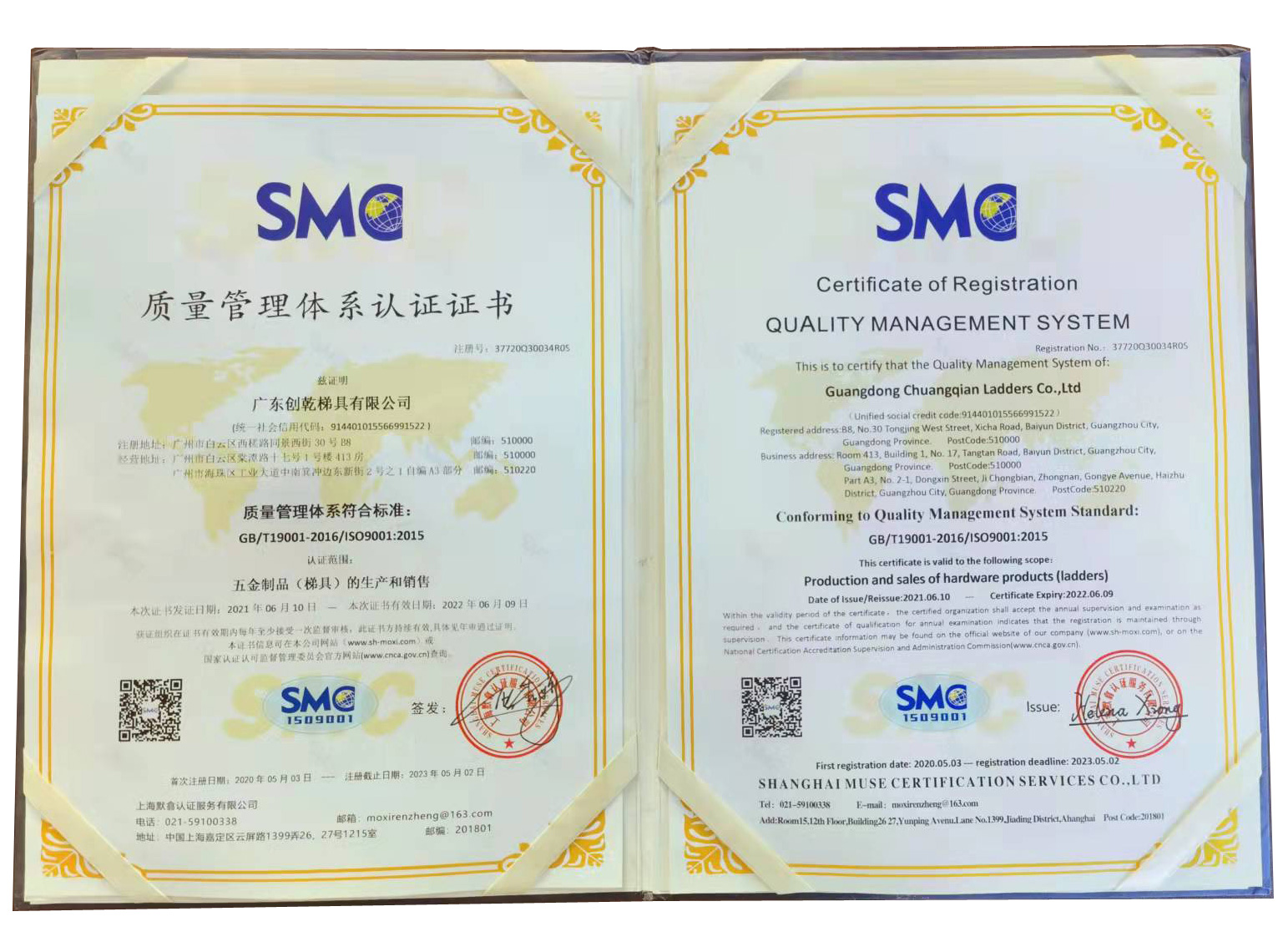 質(zhì)量管理體系認證證書