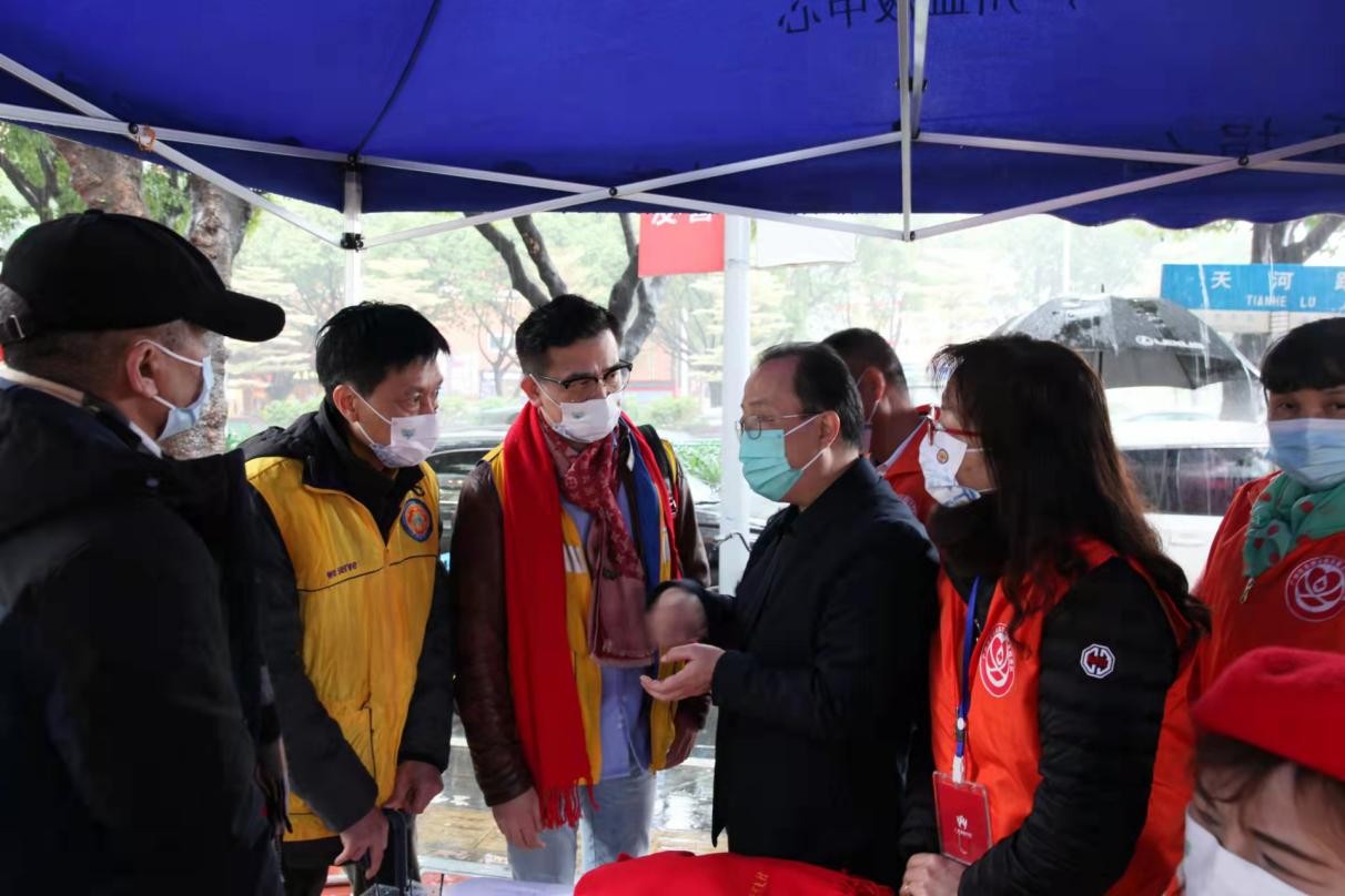 廣州血液中心書記付涌水、血源管理部主任何軍、天河南街人大工委主任傅光明早早來到了現(xiàn)場,為每位年初一大愛獻(xiàn)血的愛心人士以及參與服務(wù)的志愿者派發(fā)紅包,祝福大家在新的一年大吉大利、萬事順意。