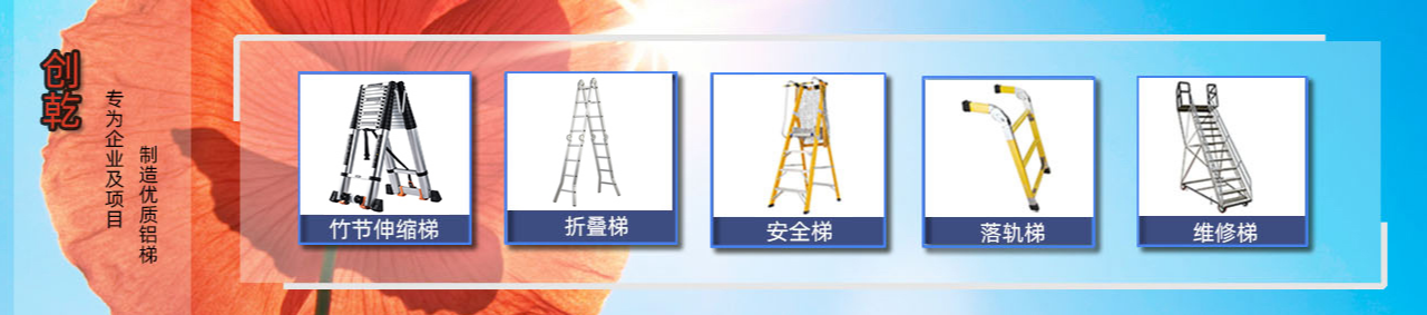 廣東創(chuàng)乾梯具有限公司歡迎您,主營:伸縮梯子,折疊梯子,鋁合金梯子,人字梯子,安全梯,竹節(jié)伸縮梯等產(chǎn)品!